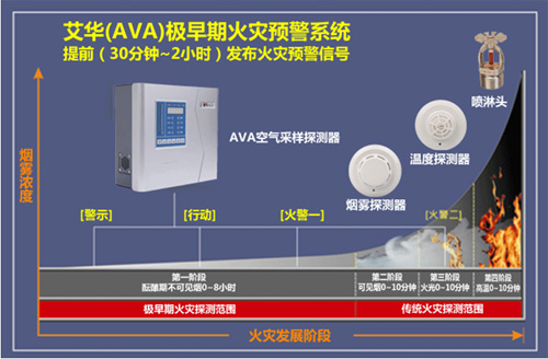 ![]() 而吸气式感烟火灾探测器拥有极高的探测能力,其灵敏度比传统的感烟系统高1000倍以上,能够在火灾发生的初期(阴燃阶段)发现火灾隐患。一般情况下,较传统的点式探测器可提前30~120分钟报警。另外由于吸气式感烟火灾探测器为主动式探测,一般有四级报警,多种联网监控措施可以解决以上的难题。所采用的采样管也是ABS或者PVC材质,采样管内无任何电子器件,不受温、湿度、电磁场等的干扰。采样孔打在塑料管上,每个采样孔就相当于一只感烟探测器。采样管布置灵活,可以水平或竖直布置,可以安装在吊顶内、地板下或机柜内,在空气流速大的机房,采样管还可以直接敷设在交换机柜上方或空调、通风设备的回风口。